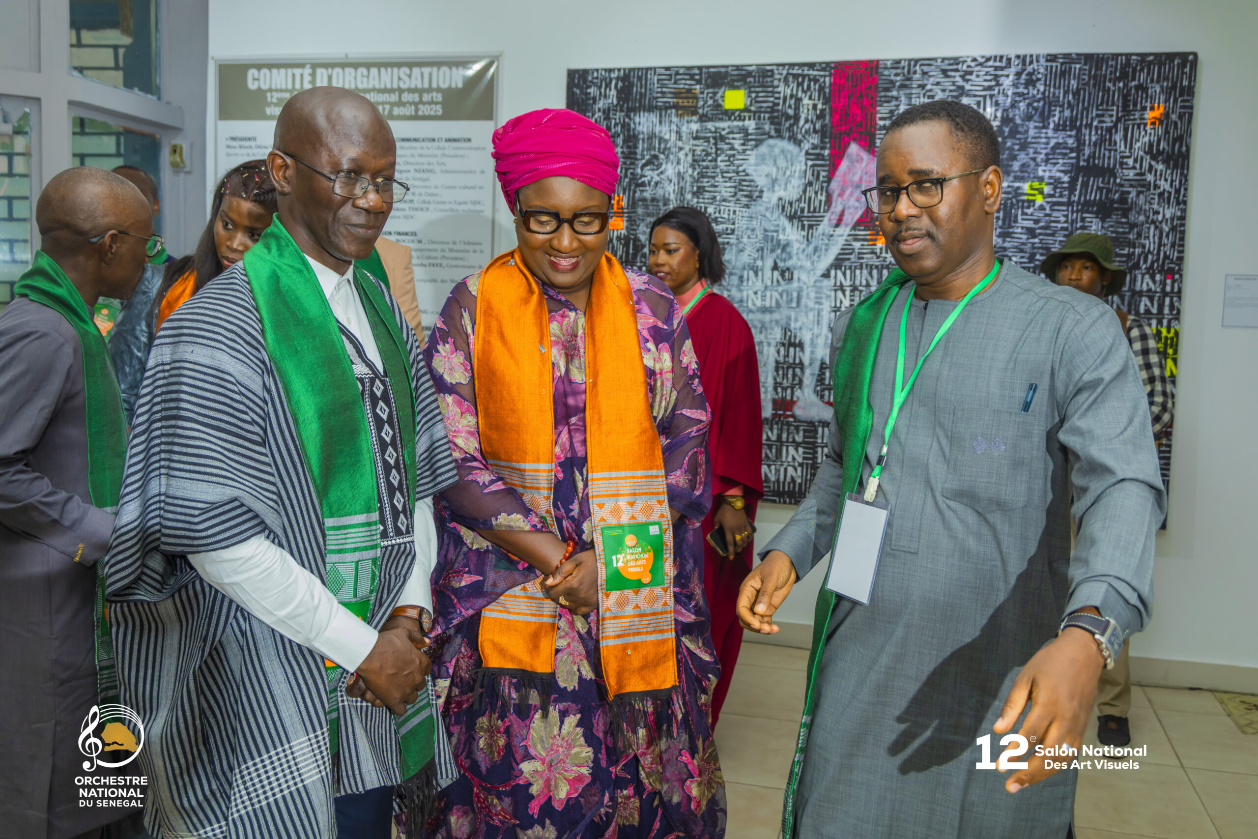 Cette cérémonie s’est déroulée en présence de plusieurs personnalités du secteur culturel : Madame Khady Diène Gaye, Ministre de la Jeunesse, des Sports et de la Culture, le Secrétaire d’État à la Culture et aux Industries Culturelles et Créatives, le Directeur Général de la Culture, le Directeur des Arts, l’Administratrice de la Galerie Nationale des Arts, et l’Administratrice de l’Orchestre National.